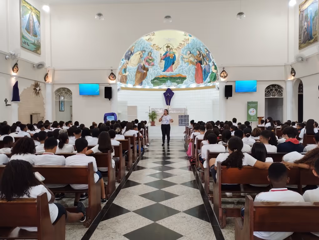Encerraram a celebração com a comunidade educativa rezando a Oração da Campanha da Fraternidade.